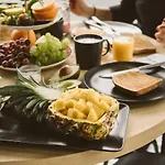 Um pequeno-almoço bufê é servido diariamente. Os visitantes podem apreciar uma atmosfera relaxante no restaurante Lisi Restaurant BAR. Um lounge bar está disponível no piso térreo. Tem o café que serve comida Europese a apenas 350 metros de distância.